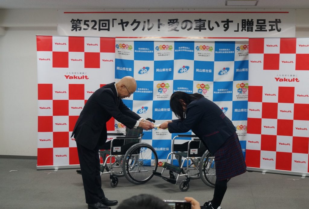 津山ヤクルト販売のエリアでは今年20台の「愛の車いす」が寄贈されます。
