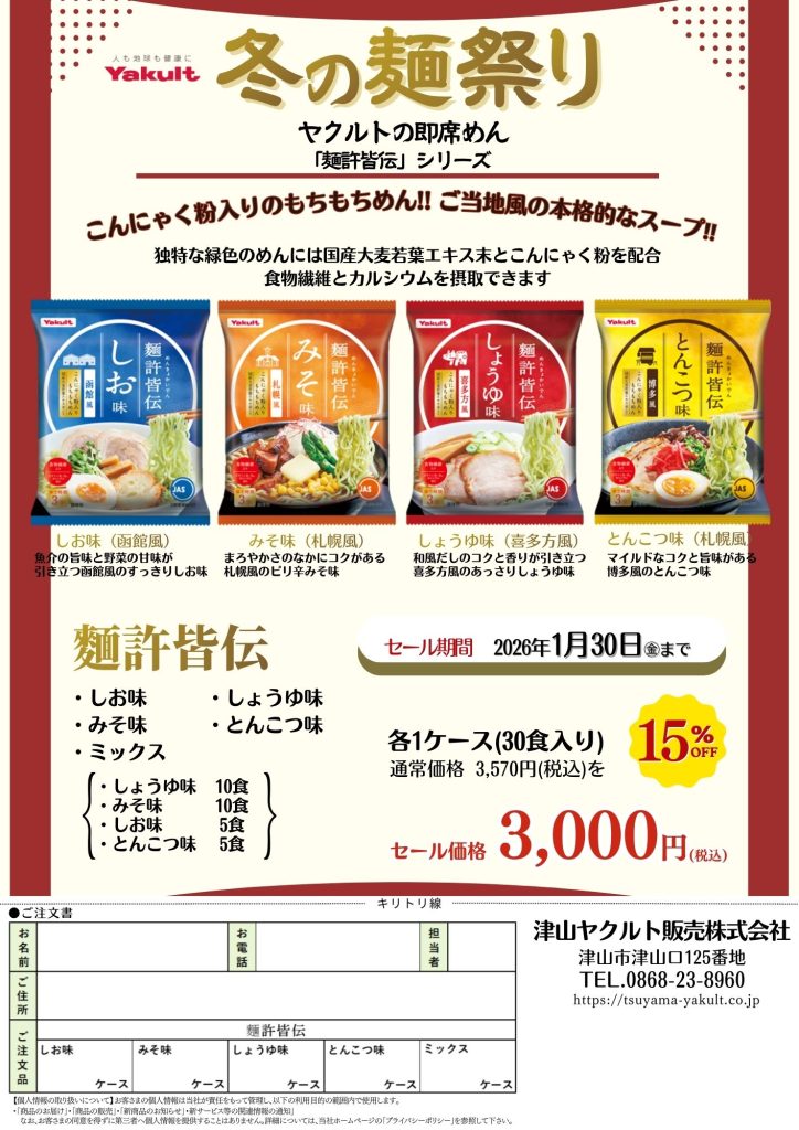 上記のセールは津山ヤクルト販売エリア内の宅配限定セールとなります。